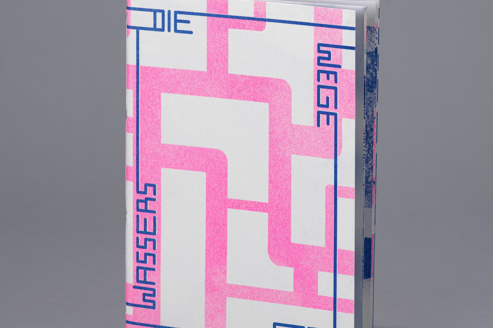 Perspektivwechsel: Wasser wird hier nicht als solches dargestellt, zu sehen sind die Hohlräume, durch die es strömt, fliesst, sickert, die Formen, Strukturen und Texturen, die Stationen des Wasserkreislaufes charakterisieren. Eine Balance zwischen Abstraktion und Dinglichkeit, umgesetzt in der umweltfreundlichen Technik der Risografie.