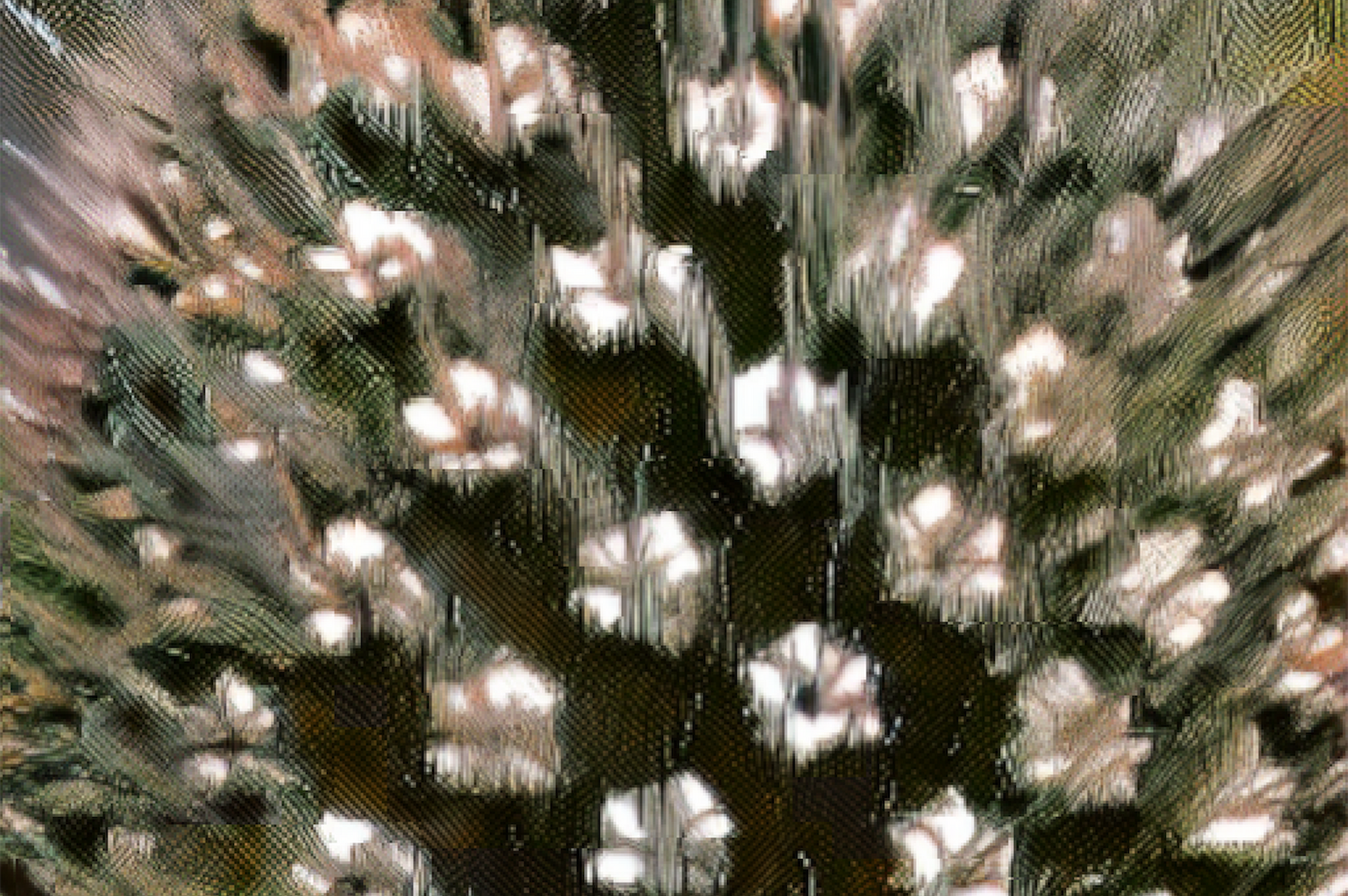 In the animation, well-known flower paintings from art history are deconstructed using AI and randomization algorithms. The basis for this is a loop that breaks the images into randomly shifting tiles. The image resolution is continuously halved and then speculatively upscaled by AI.